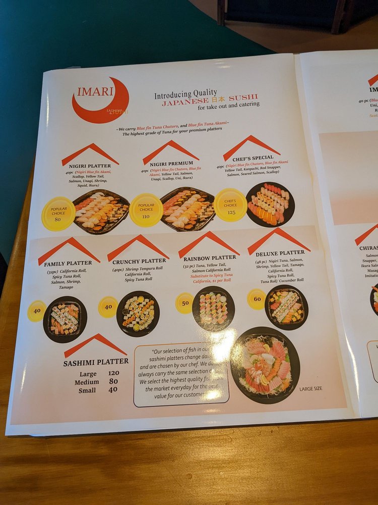 Imari sashimi & sushi Menu (Update 2025)